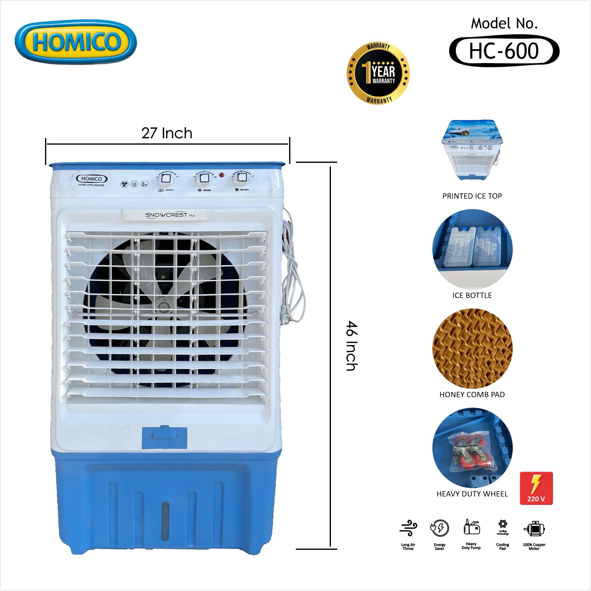 • 100% Copper Motor with 1 Year Warranty